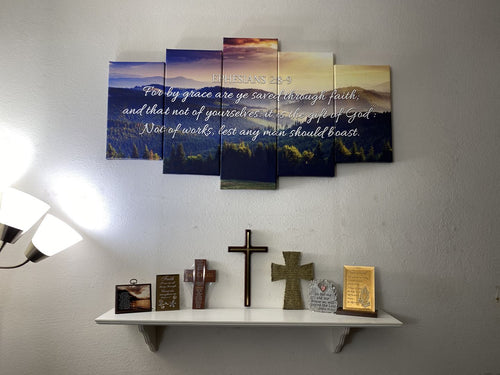 Our contemporary Christian wall art provides the perfect spiritual ambience for your home. Find giclee prints with your favorite scripture verse from the Bible. You’ll recognize quote from the books of Philippians, Proverbs 3:5-6, John 3:16, Romans, Matthew, Mark, Jeremiah 29:11, Psalm 23, Fruit of the Spirit, Christian Signs, Be Still and Know That I am God, Serenity Prayer Wall Art & Decor, Love is Patient Love is Kind, Be Still & Know that I am God Art, Amazing Grace Wall Art & Decor, As for Me and My House Wall Art & Decor, Be Strong & Courageous Wall Art, Psalm 91 Wall Art & Decor, Jesus Christ Wall Art & Decor, The Lords Prayer Wall Art & Decor, Praying Hands Wall Art & Decor, 10 commandments wall art, The Bible Wall Art, Give it to God and Go to Sleep Wall Art & decor, Footprints in the Sand Wall Art & Decor, and many more to inspire you to walk closer to God. Don’t worry as we sell custom Christian wall decor which is framed and options available in the NIV (New International Version), KJV (King James Version) or any version of God’s holy word. Finally we sell art such as paintings to prints and pictures which are perfect gifts for men and women. My christian home décor is stunning and I have a large variety of Christian canvas print wall art which will make your job easy when decorating or deciding to decorate. Take a look around, I'm sure you'll be happy with what you see.